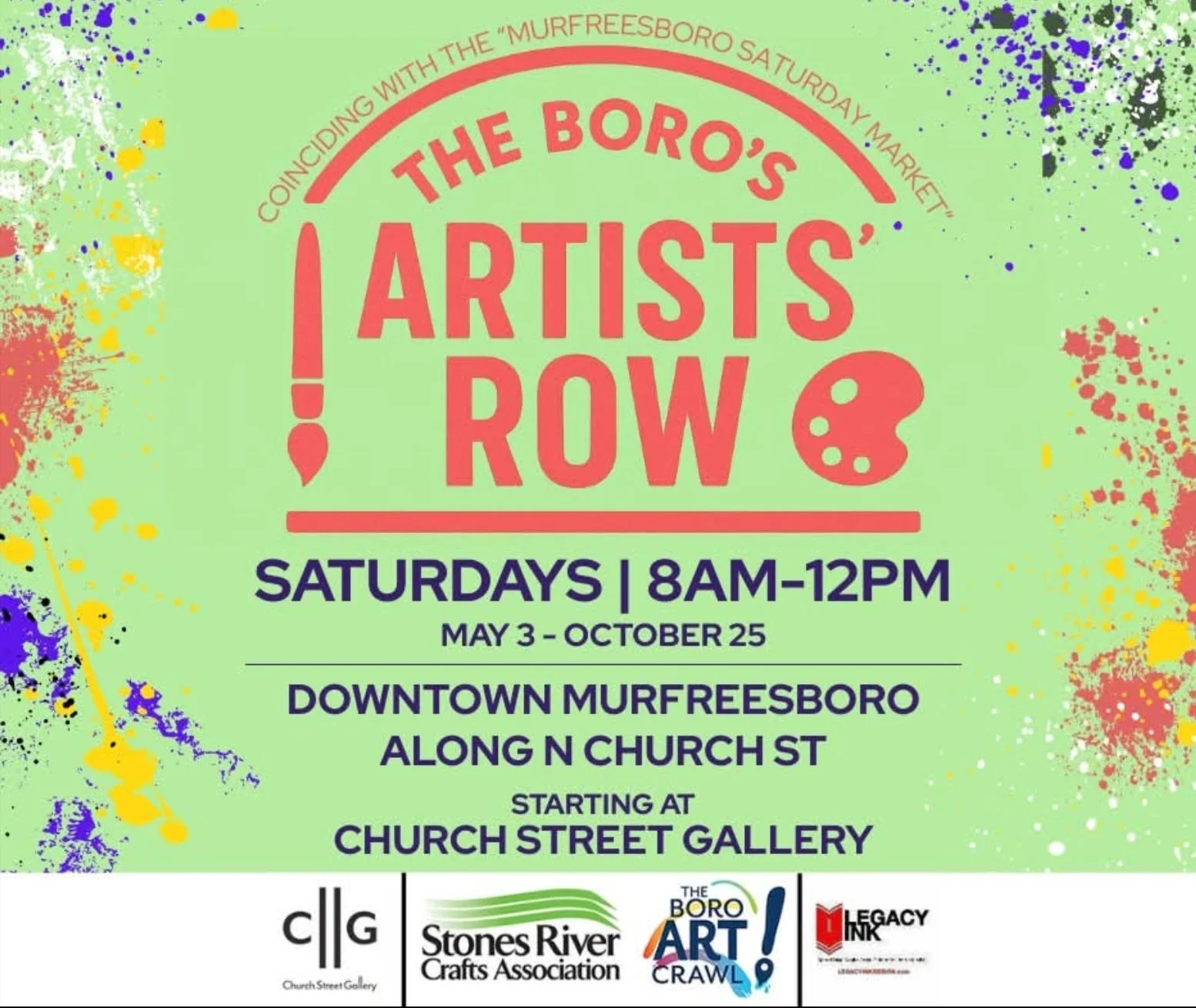 Saturdays 8:00 AM - 12:00 PM, along Church St. in Murfreesboro: Artists’ Row